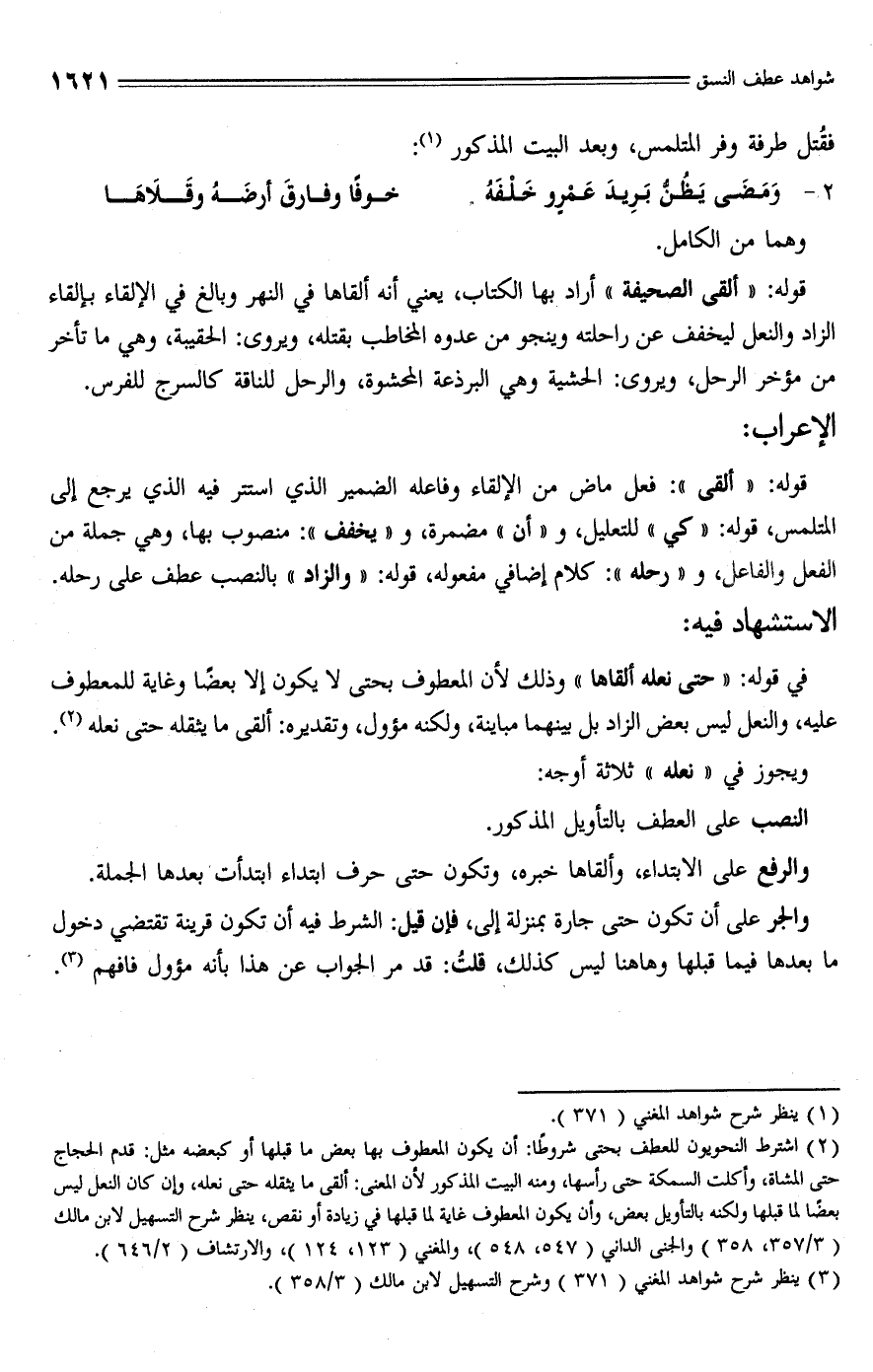 (¬3) ينظر شرح شواهد المغني (371) وشرح التسهيل لابن مالك (3/ 358).
