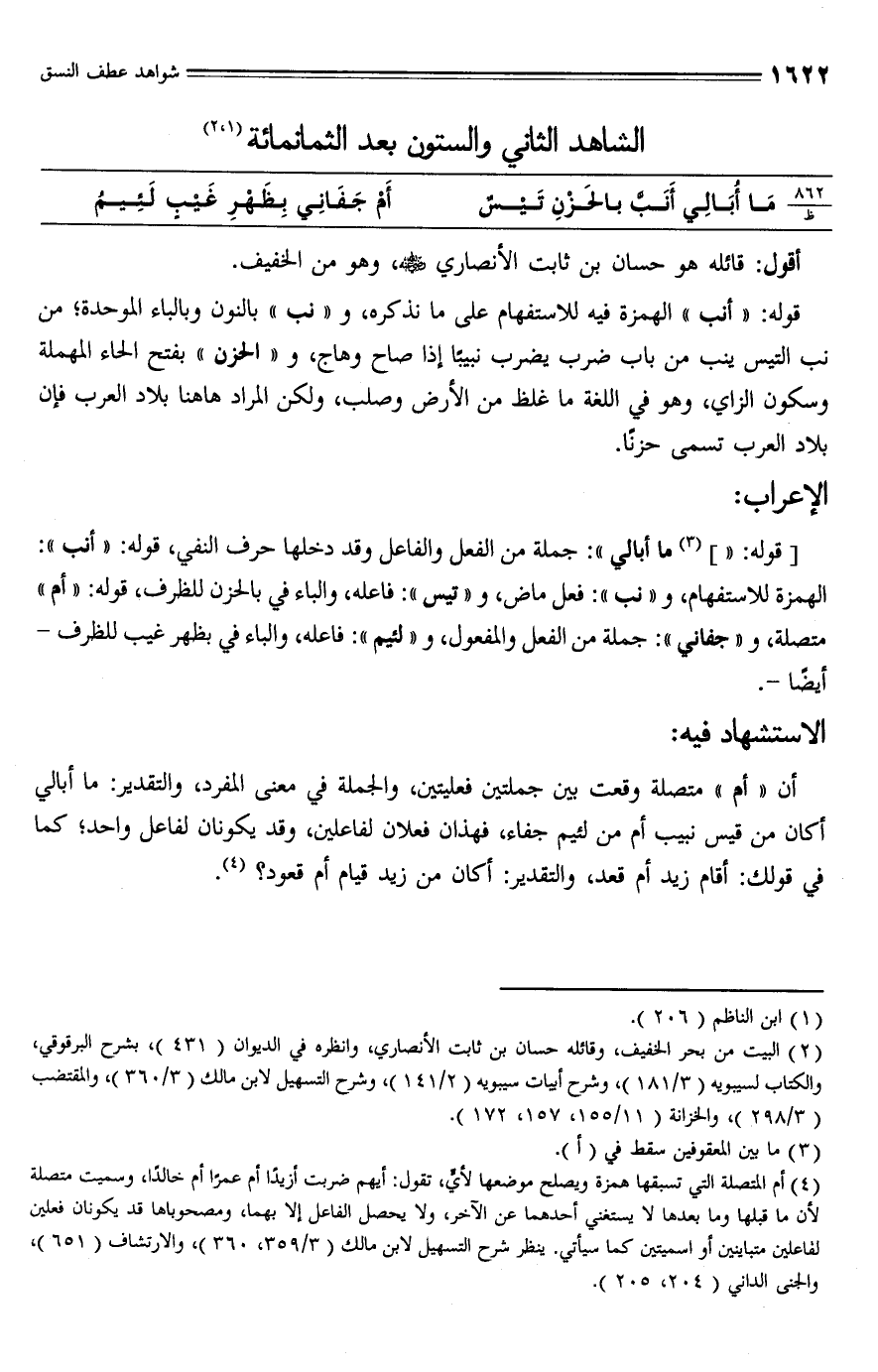 (¬2) البيت من بحر الخفيف، وقائله حسان بن ثابت الأنصاري، وانظره في الديوان (431)، بشرح البرقوقي، والكتاب لسيبويه (3/ 181)، وشرح أبيات سيبويه (2/ 141)، وشرح التسهيل لابن مالك (3/ 360)، والمقتضب (3/ 298)، والخزانة (11/ 155، 157، 172).