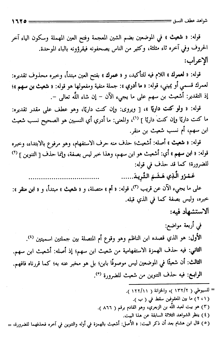 الثاني: فيه حذف الهمزة الاستفهامية من شعيث ابن سهم؛ إذ أصله: أشعيث ابن سهم.