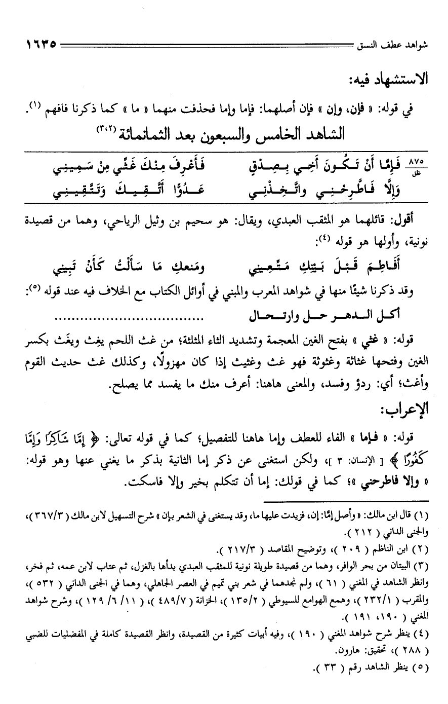 (¬1) قال ابن مالك: "وأصل إمَّا: إن، فزيدت عليها ما، وقد يستغنى في الشعر بإن" شرح التسهيل لابن مالك (3/ 367)، والجنى الداني (212).