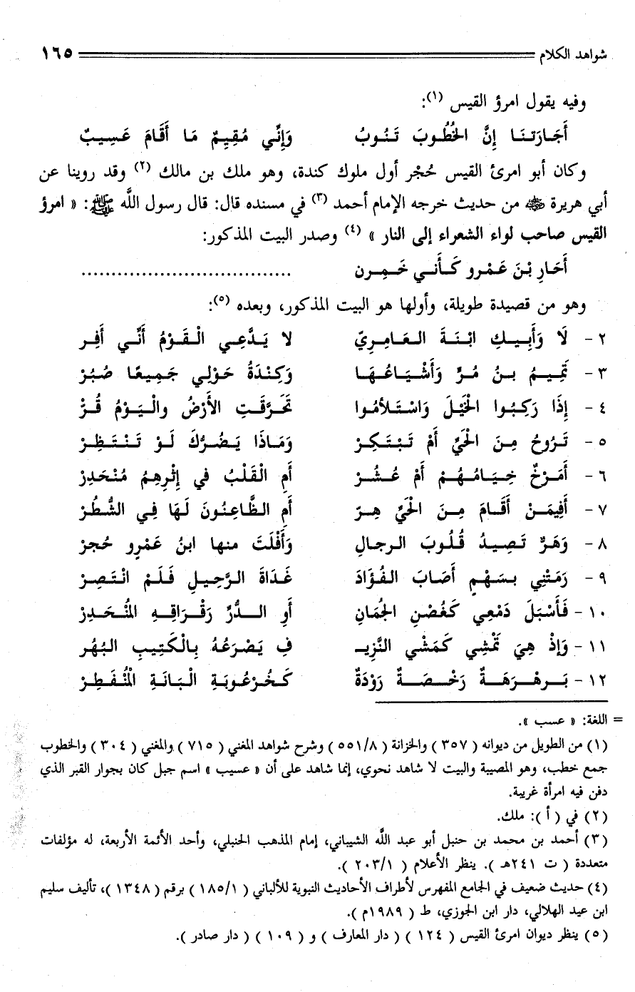 (¬5) ينظر ديوان امرئ القيس (124) (دار المعارف) و (109) (دار صادر).
