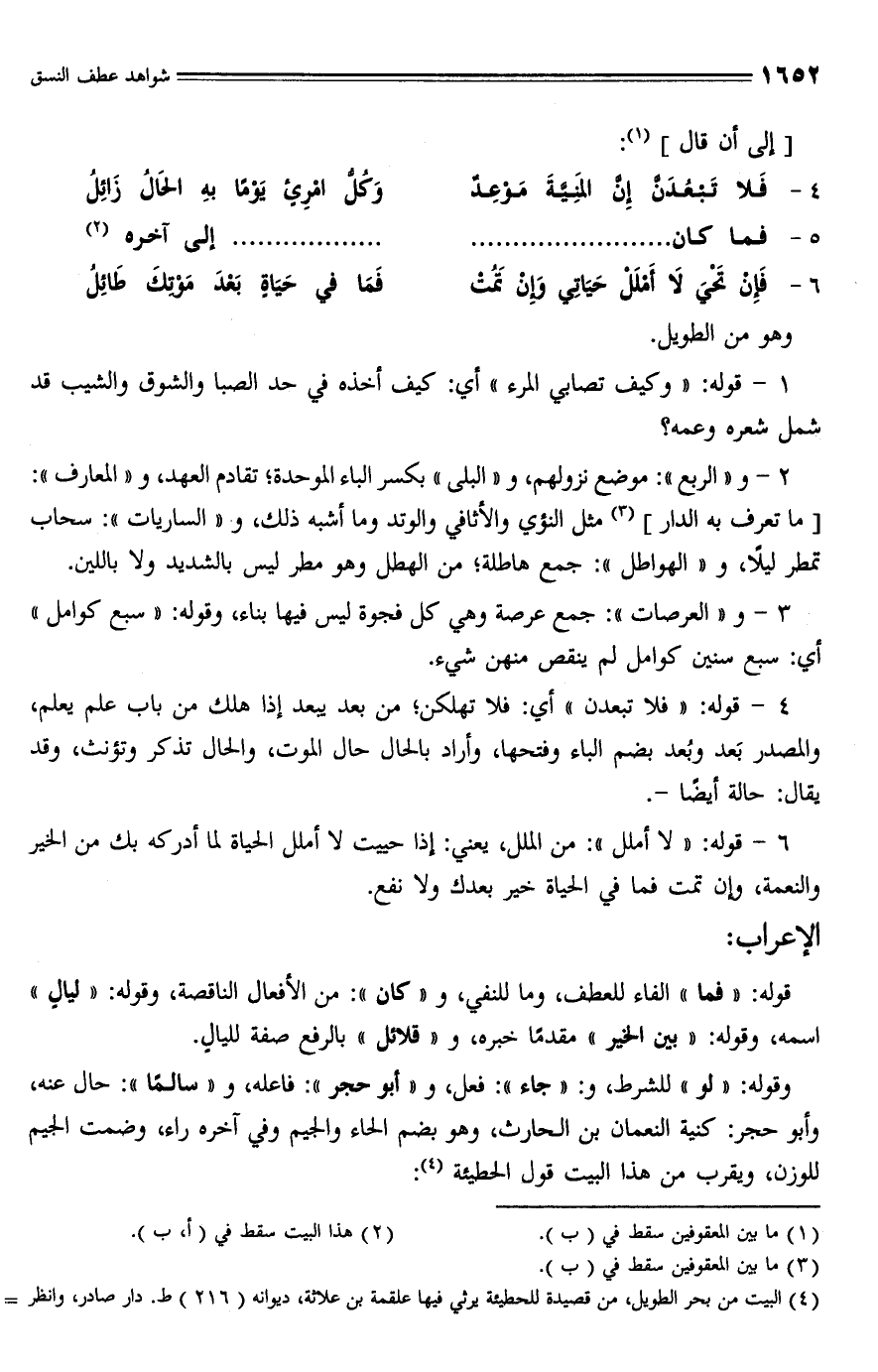 (¬4) البيت من بحر الطويل، من قصيدة للحطيئة يرثي فيها علقمة بن علاثة، ديوانه (216) ط. دار صادر، وانظر =