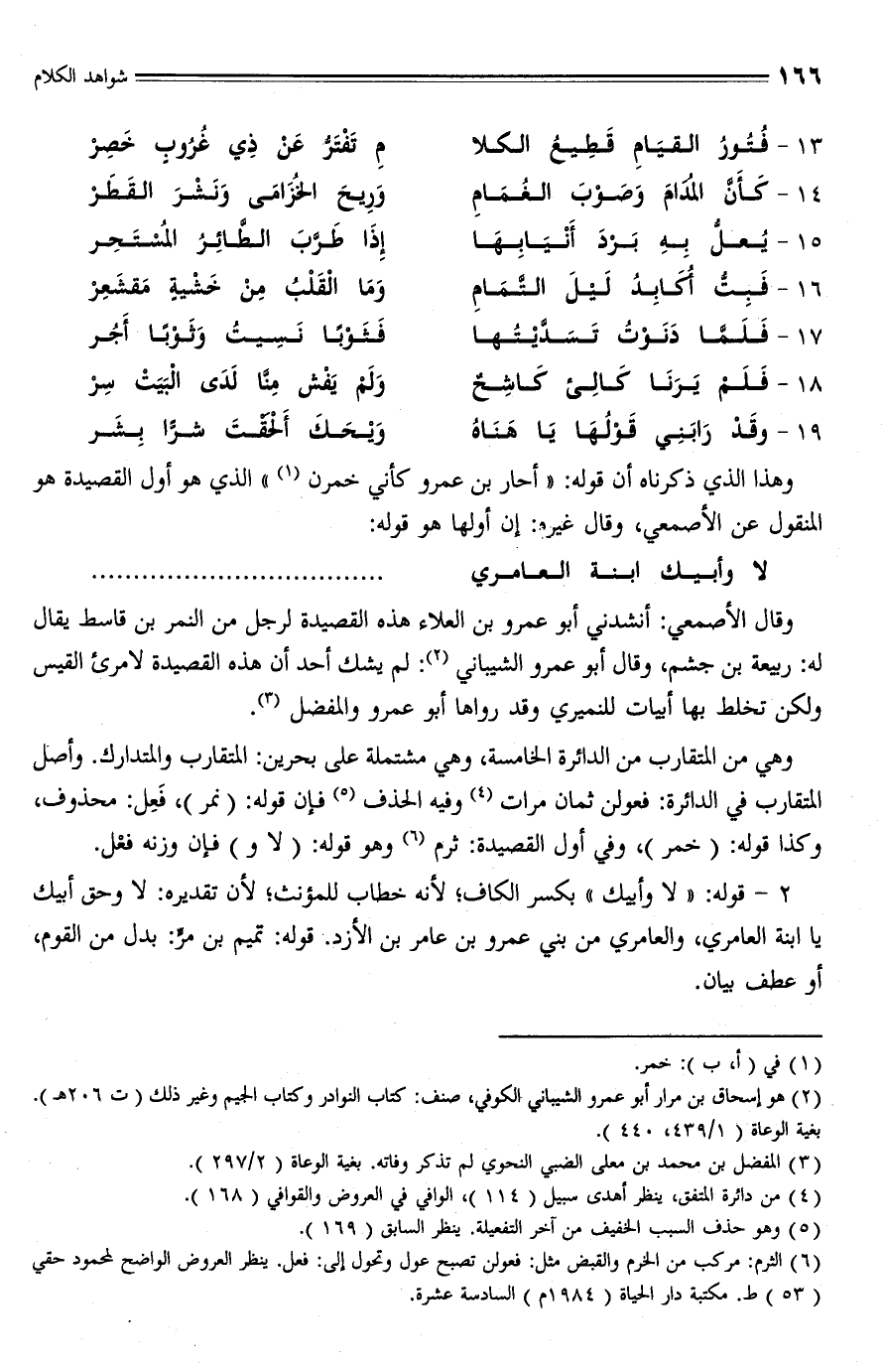(¬6) الثرم: مركب من الخرم والقبض مثل: فعولن تصبح عول وتحول إلى: فعل. ينظر العروض الواضح لمحمود حقي (53) ط. مكتبة دار الحياة (1984 م) السادسة عشرة.