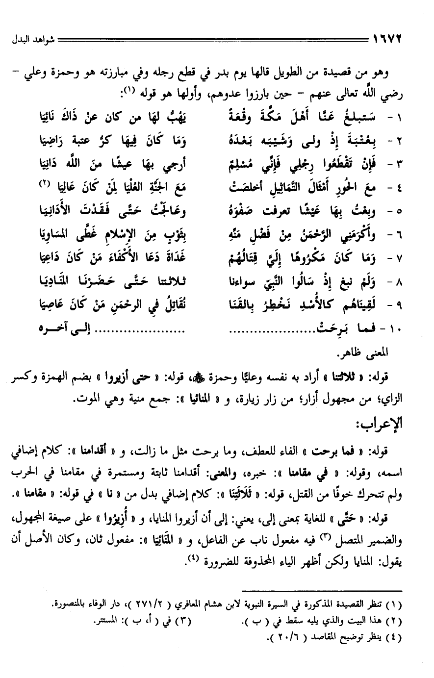 (¬1) تنظر القصيدة المذكورة في السيرة النبوية لابن هشام المعافري (2/ 271)، دار الوفاء بالمنصورة.