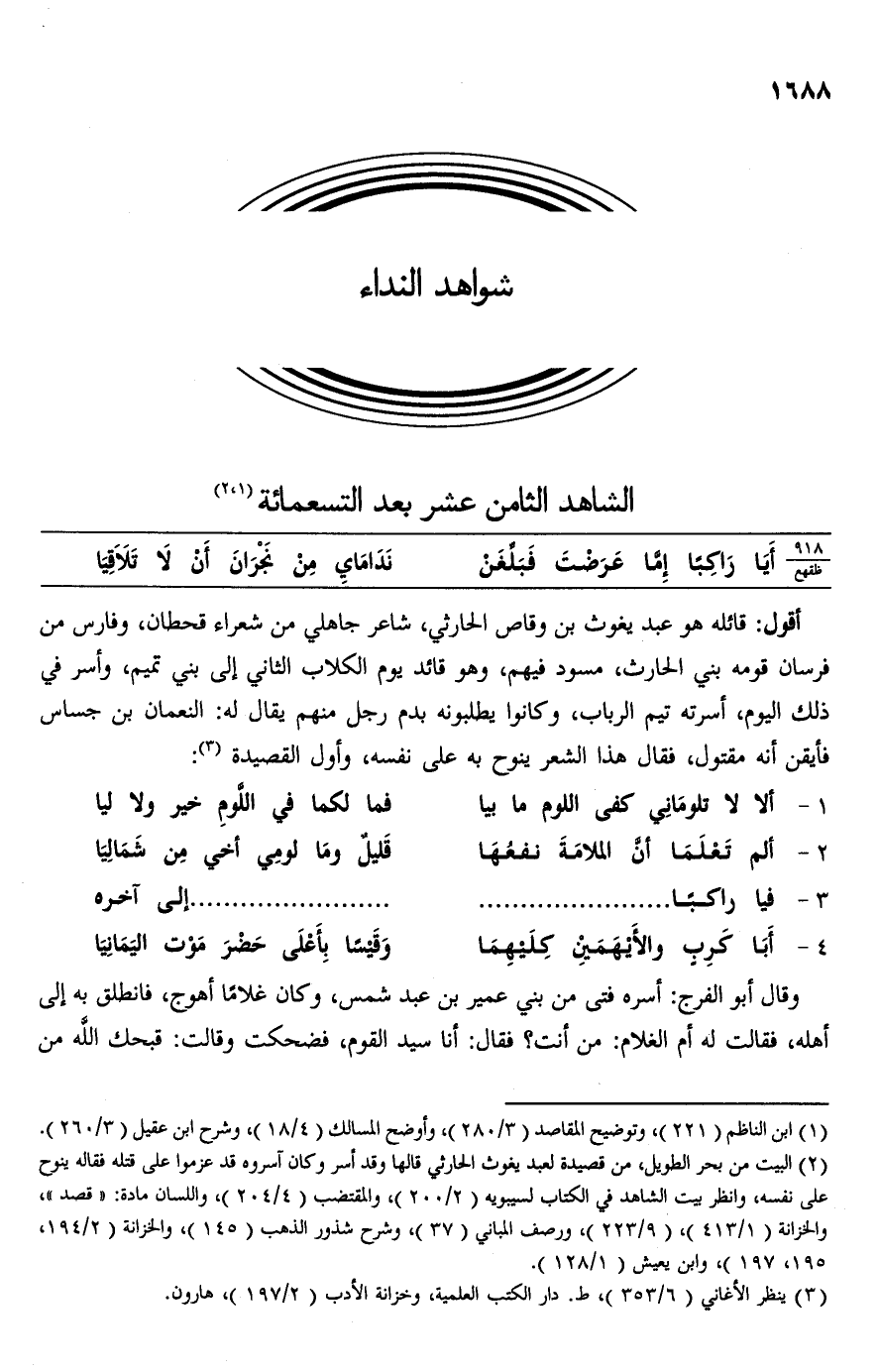 (¬3) ينظر الأغاني (6/ 353)، ط. دار الكتب العلمية، وخزانة الأدب (2/ 197)، هارون.