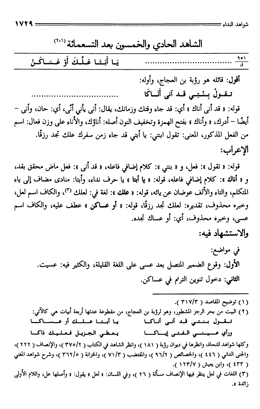 (¬2) البيت من بحر الرجز المشطور، وهو لرؤبة بن العجاج، من مقطوعة عدتها أربعة أبيات هي كالآتي: