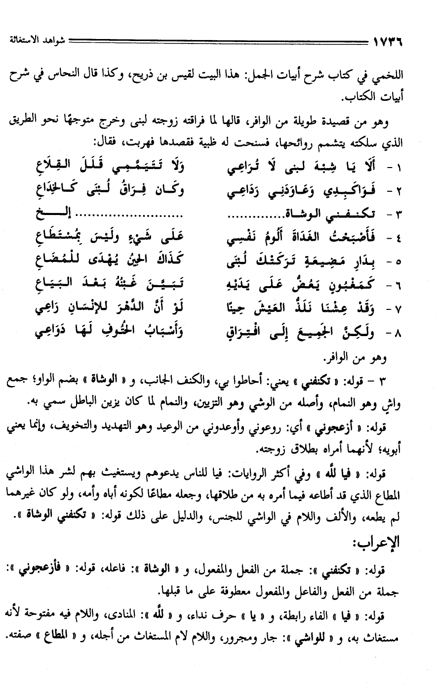 1 - أَلَا يَا شِبْهَ لبنى لَا تُرَاعِي ... وَلَا تَتَيَمَّمِي قَلَلَ القِلَاعِ