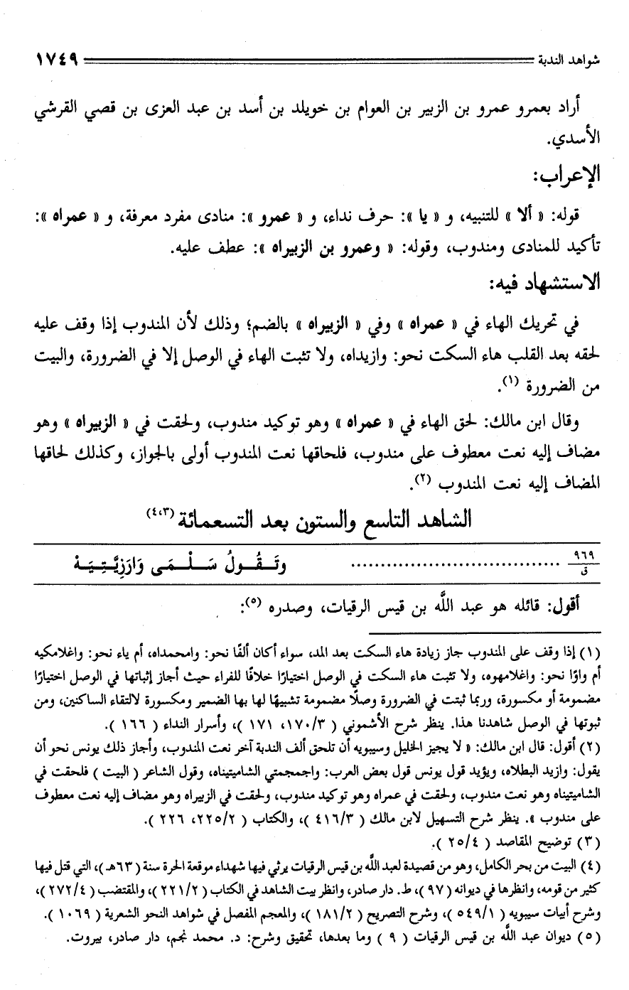 (¬4) البيت من بحر الكامل، وهو من قصيدة لعبد الله بن قيس الرقيات يرثي فيها شهداء موقعة الحرة سنة (63 هـ)، التي قتل فيها كثير من قومه، وانظرها في ديوانه (97)، ط. دار صادر، وانظر بيت الشاهد في الكتاب (2/ 221)، والمقتضب (4/ 272)، وشرح أبيات سيبويه (1/ 549)، وشرح التصريح (2/ 181)، والمعجم المفصل في شواهد النحو الشعرية (1069).