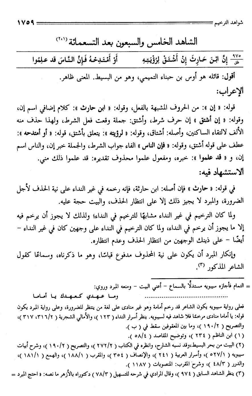 (¬3) ينظر الشاهد السابق (974)، وقال المرادي في شرحه للتسهيل (3/ 78) دكتوراه بالأزهر ما نصه: "احتج المبرد =