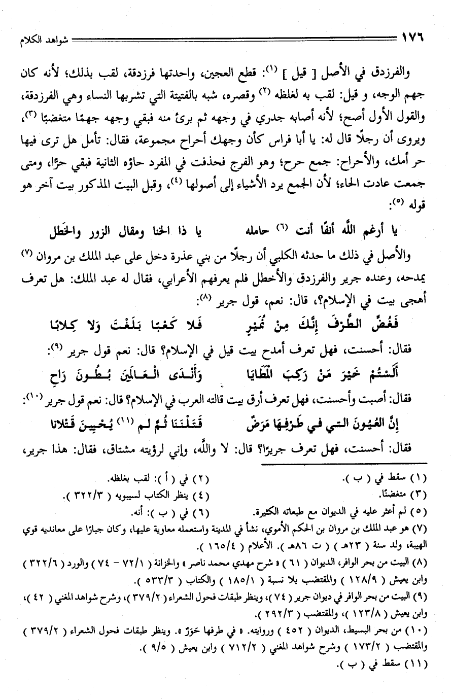 (¬9) البيت من بحر الوافر في ديوان جرير (74)، وينظر طبقات فحول الشعراء (2/ 379)، وشرح شواهد المغني (42)، وابن يعيش (8/ 123)، والمقتضب (3/ 292).