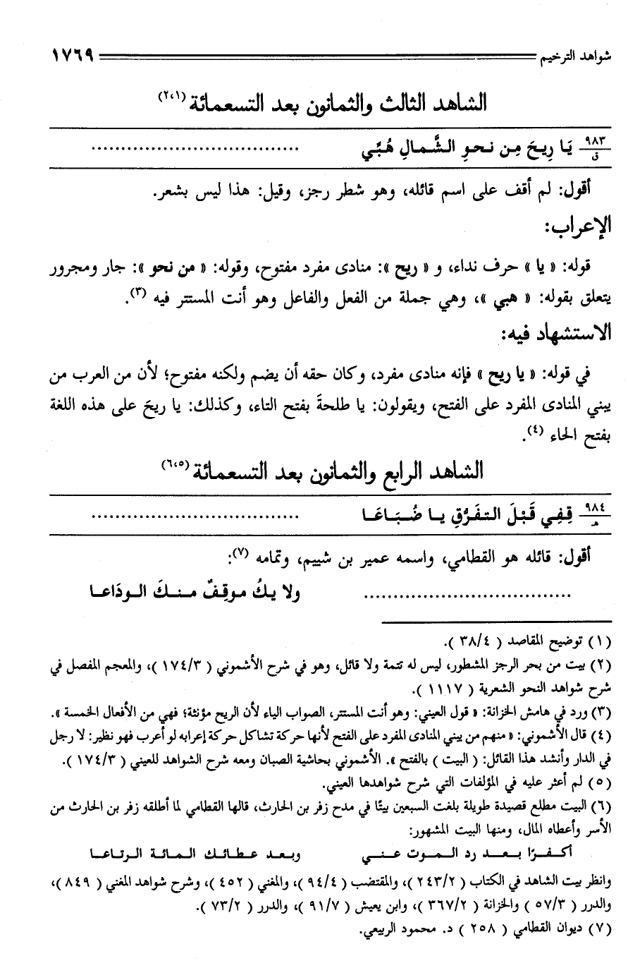(¬3) ورد في هامش الخزانة: "قول العيني: وهو أنت المستتر، الصواب الياء لأن الريح مؤنثة؛ فهي من الأفعال الخمسة".