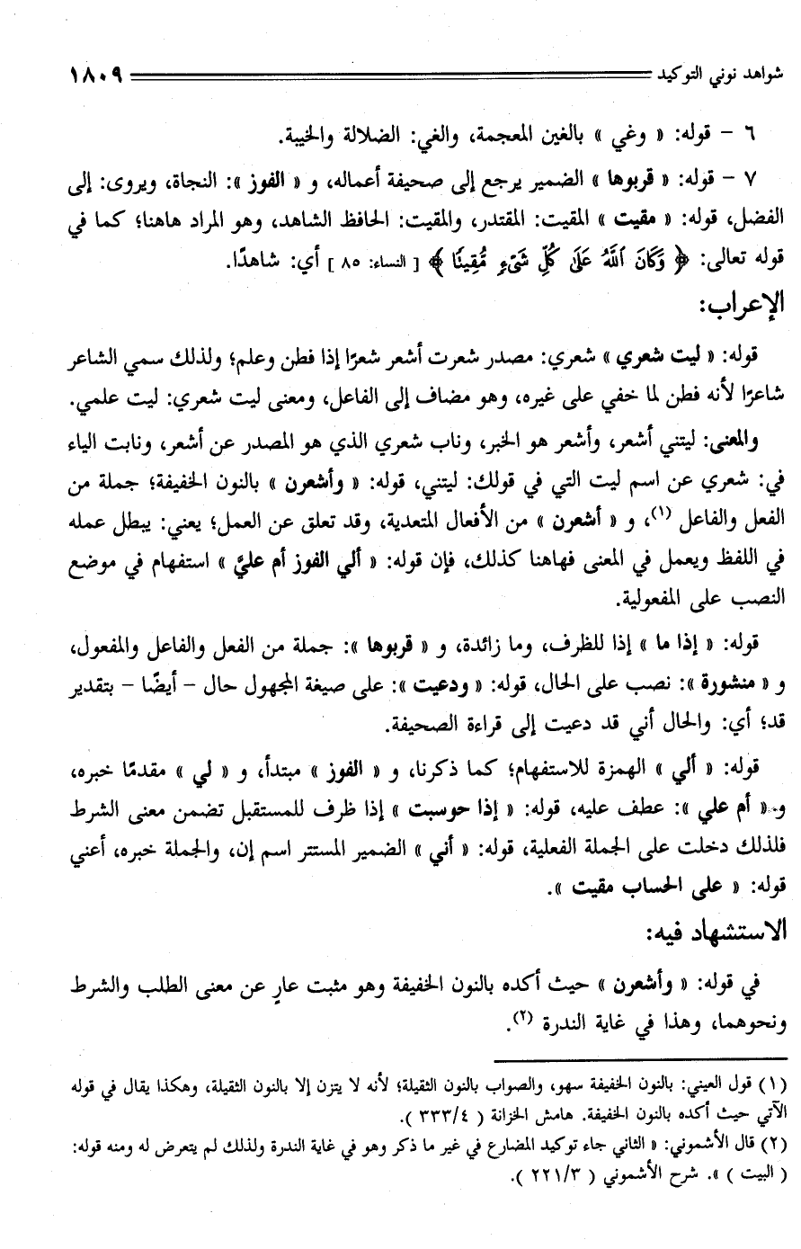 (¬1) قول العيني: بالنون الخفيفة سهو، والصواب بالنون الثقيلة؛ لأنه لا يتزن إلا بالنون الثقيلة، وهكذا يقال في قوله الآتي حيث أكده بالنون الخفيفة. هامش الخزانة (4/ 333).