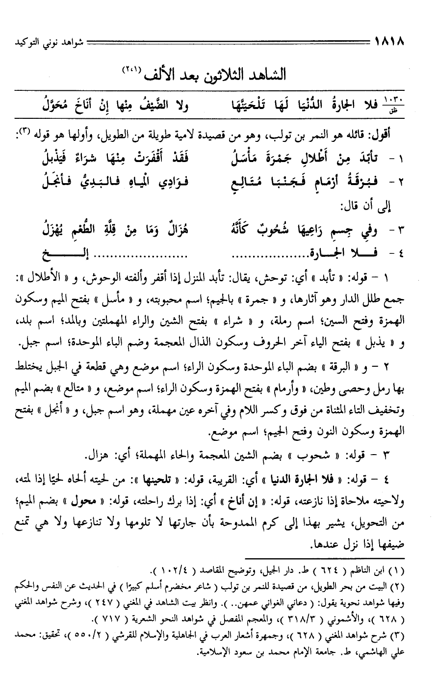 (¬3) شرح شواهد المغني (628)، وجمهرة أشعار العرب في الجاهلية والإسلام للقرشي (2/ 550)، تحقيق: محمد علي الهاشمي، ط. جامعة الإمام محمد بن سعود الإسلامية.