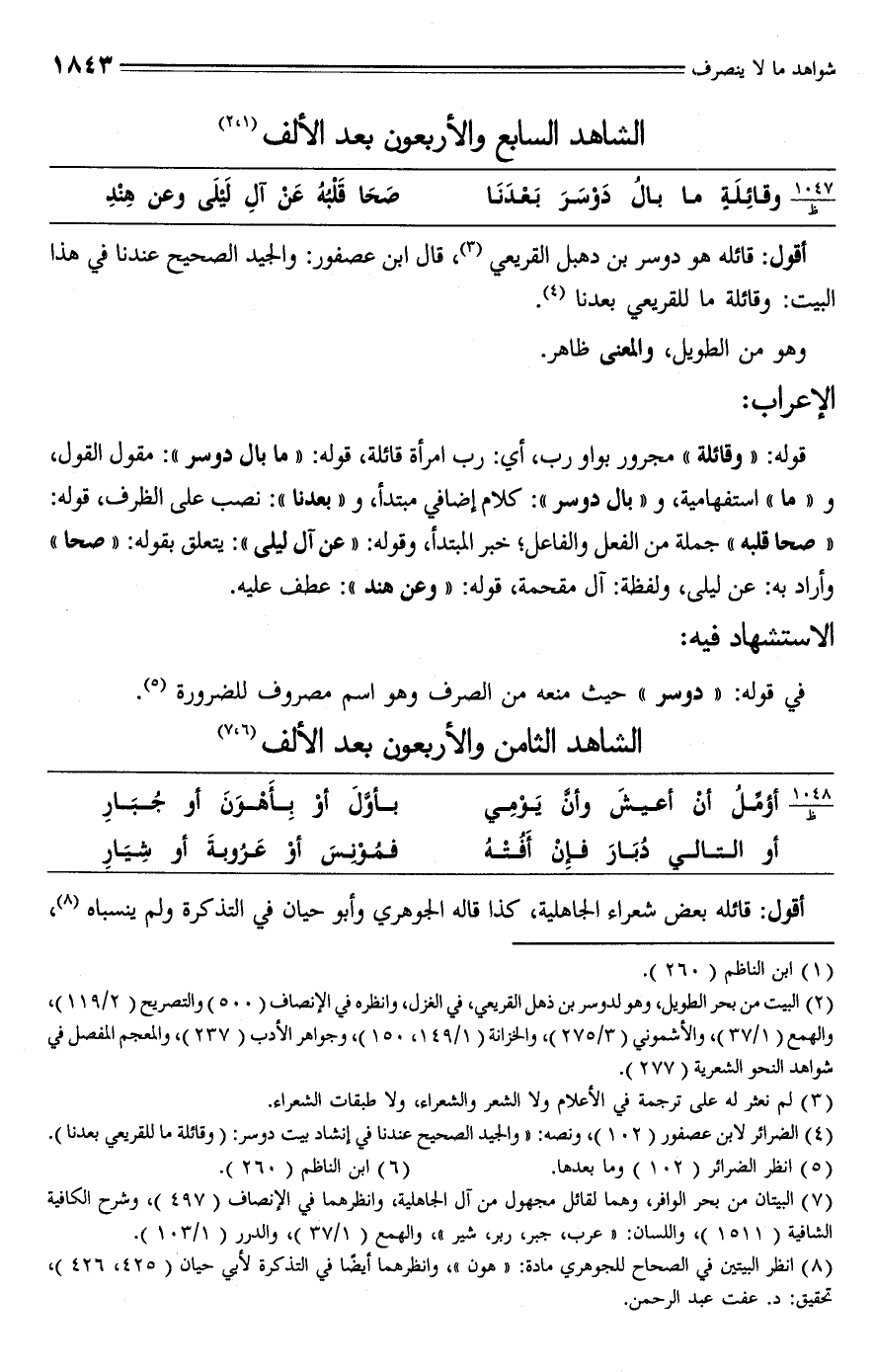 (¬7) البيتان من بحر الوافر، وهما لقائل مجهول من آل الجاهلية، وانظرهما في الإنصاف (497)، وشرح الكافية الشافية (1511)، واللسان: "عرب، جبر، ربر، شير"، والهمع (1/ 37)، والدرر (1/ 103).