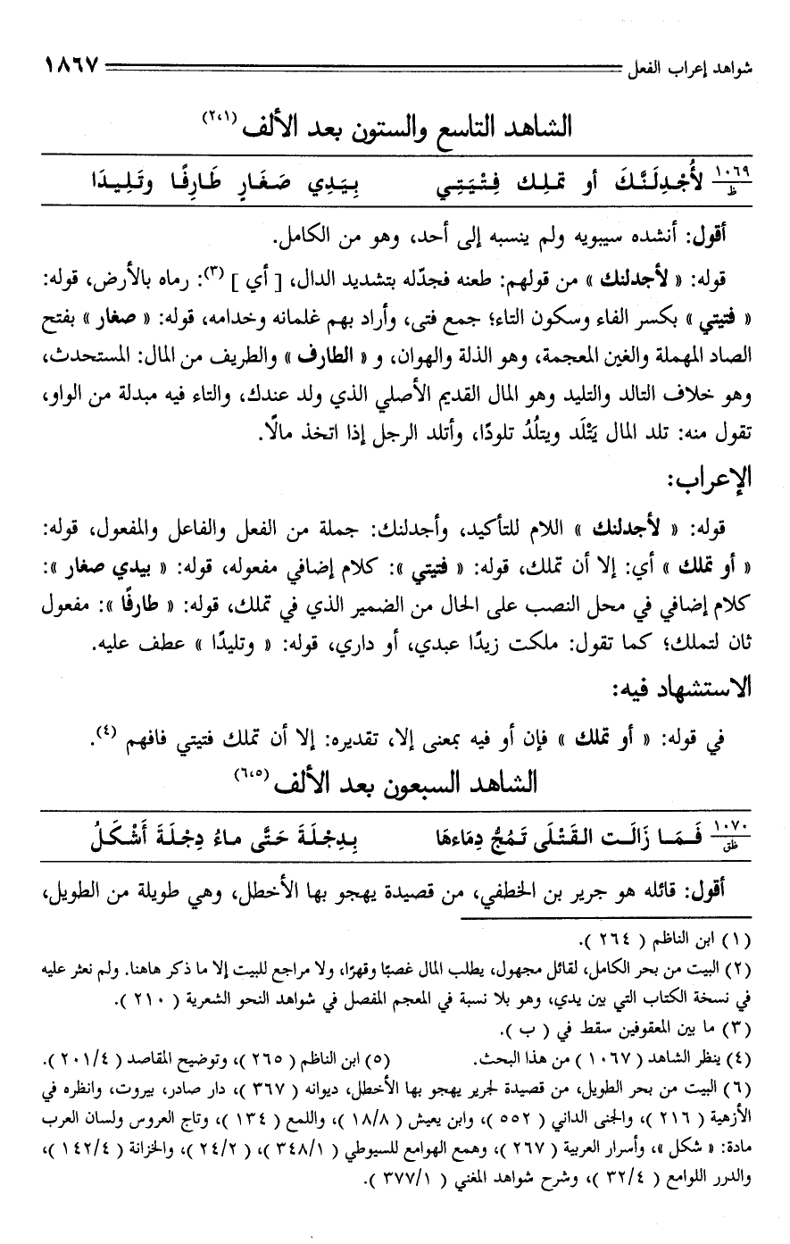 الشاهد السبعون بعد الألف (¬5)، (¬6)