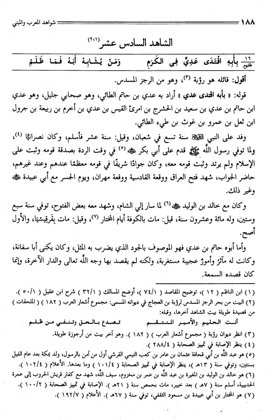 16 / ظقهع بِأَبِهِ اقْتَدَى عَدِيٌّ فِي الكَرَمِ ... وَمَنْ يُشابِهْ أَبَهُ فَمَا ظَلَمْ