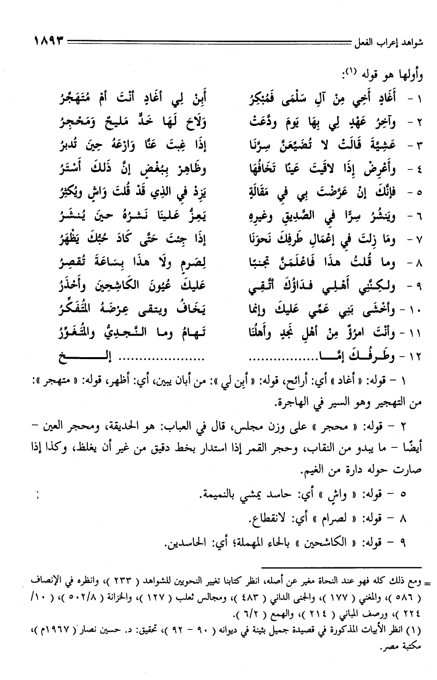 (¬1) انظر الأبيات المذكورة في فصيدة جميل بثينة في ديوانه (90 - 92)، تحقيق: د. حسين نصار - (1967 م)، مكتبة مصر.