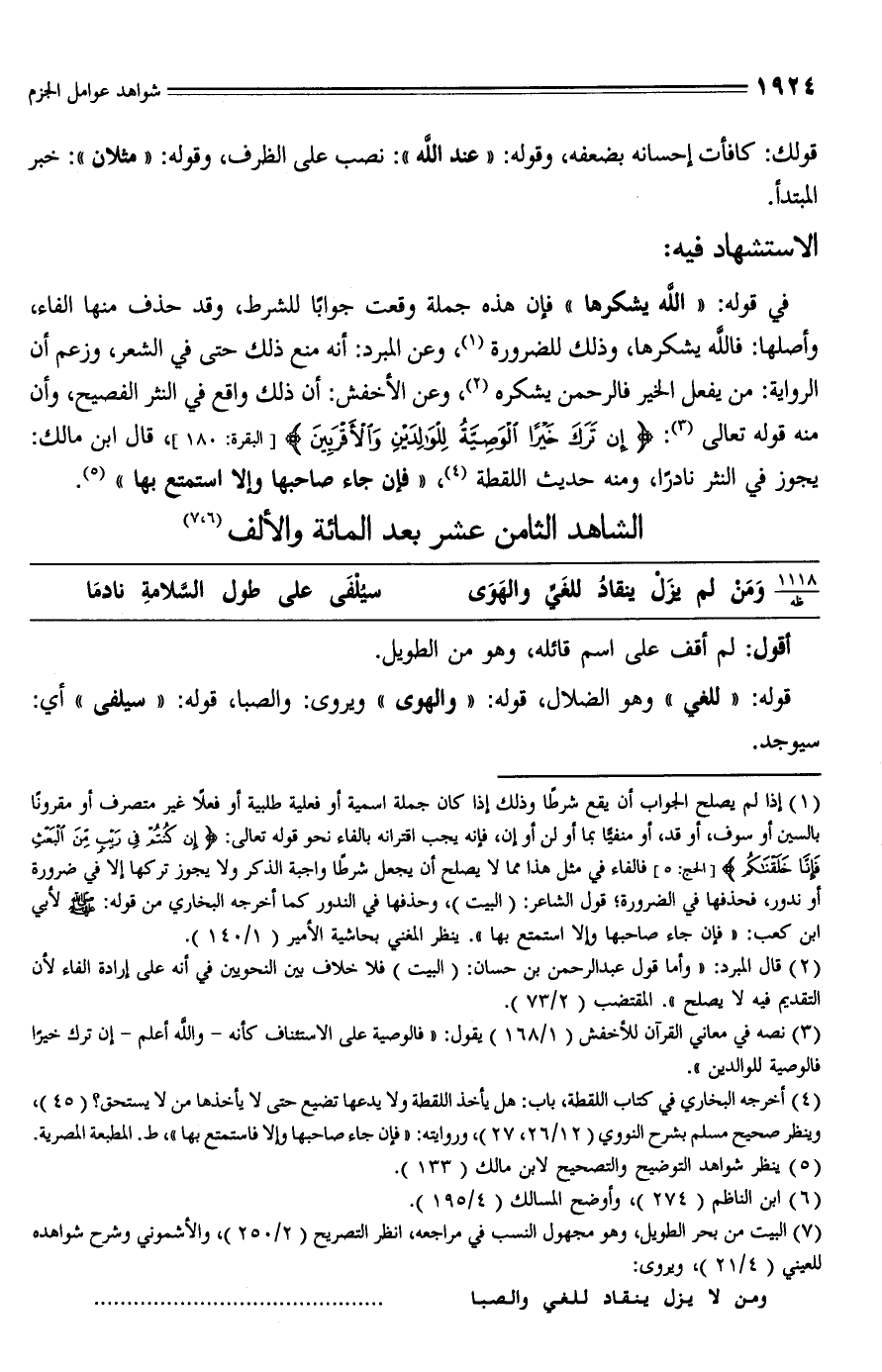 الشاهد الثامن عشر بعد المائة والألف (¬6)، (¬7)