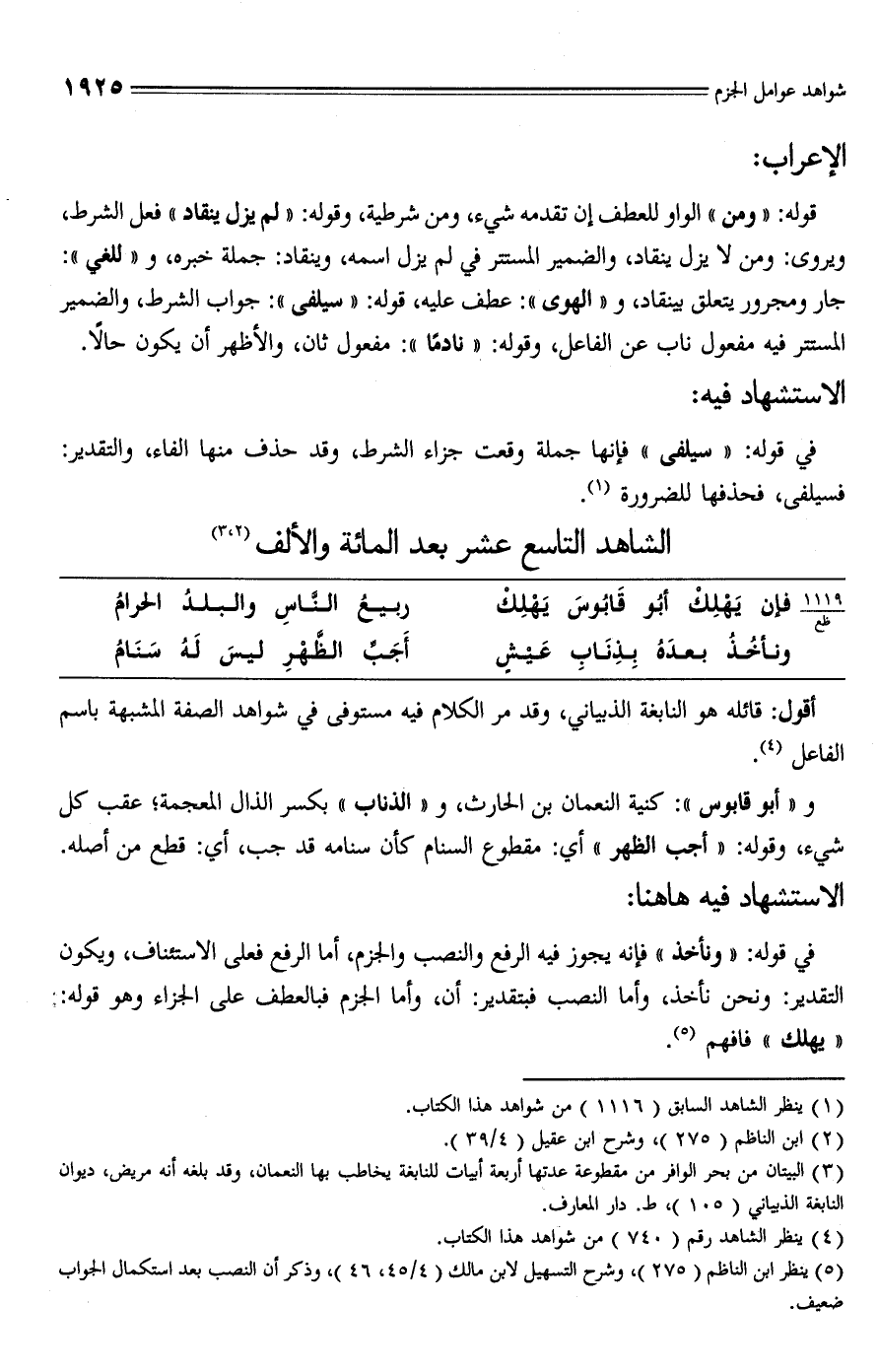 (¬4) ينظر الشاهد رقم (740) من شواهد هذا الكتاب.