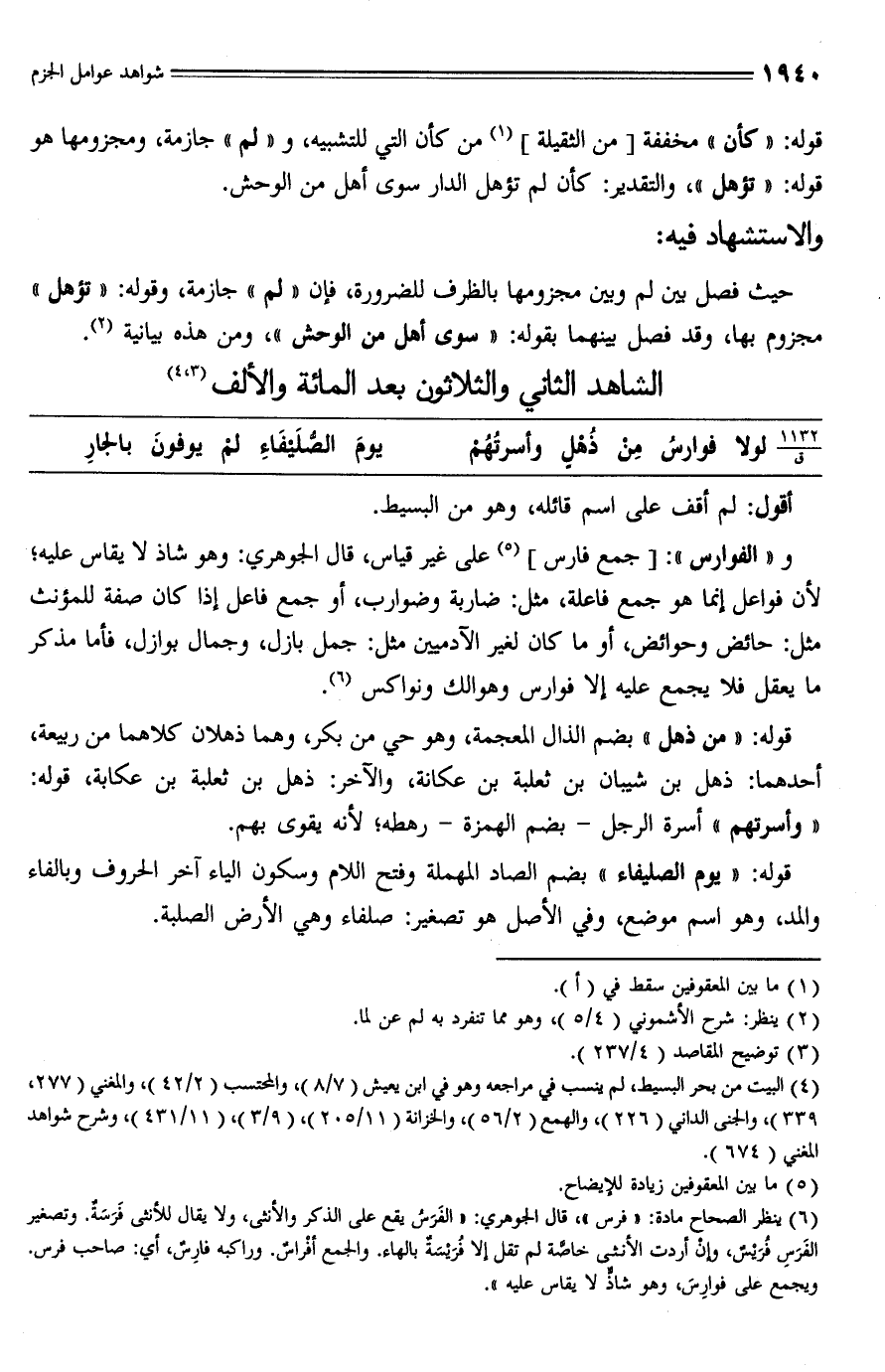 (¬4) البيت من بحر البسيط، لم ينسب في مراجعه وهو في ابن يعيش (7/ 8)، والمحتسب (2/ 42)، والمغني (277، 339)، والجنى الداني (226)، والهمع (2/ 56)، والخزانة (11/ 205)، (9/ 3)، (11/ 431)، وشرح شواهد المغني (674).