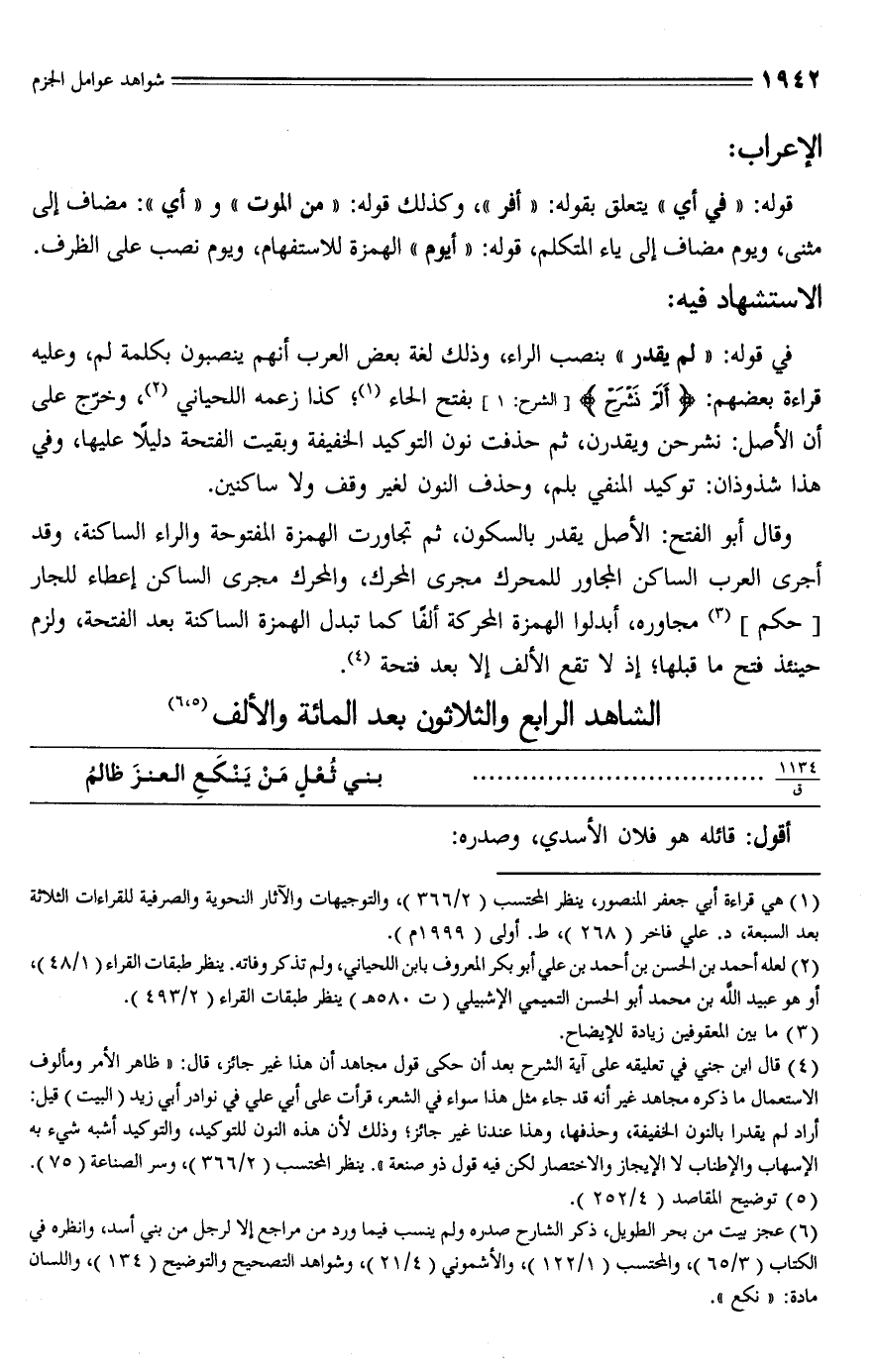 الشاهد الرابع والثلاثون بعد المائة والألف (¬5) , (¬6)