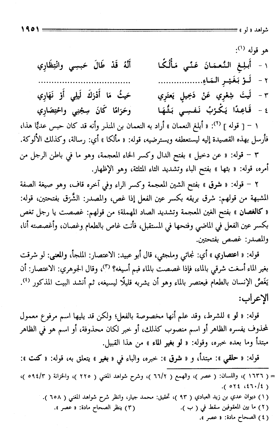 (¬1) ديوان عدي بن زيد العبادي (93)، تحقيق: محمد جيار، وانظر شرح شواهد المغني (658).