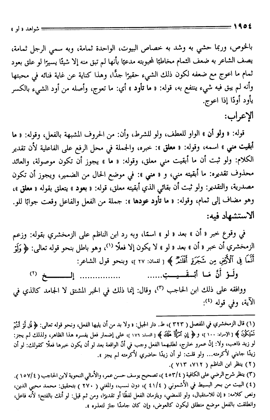 (¬4) البيت من بحر البسيط في الأشموني (4/ 41)، دون نسب، والمغني (270) بتحقيق: محمد محيي الدين، ونص كلامه: "إن للاستقبال، ولو للمضي، ويلزمان الفعل لفظًا أو تقديرًا، ومن ثم قيل: لو أنك بالفتح؛ لأنه فاعل، وانطلقت بالفعل موضع منطلق ليكون كالعوض، وإن كان جامدًا جاز لتعذره".