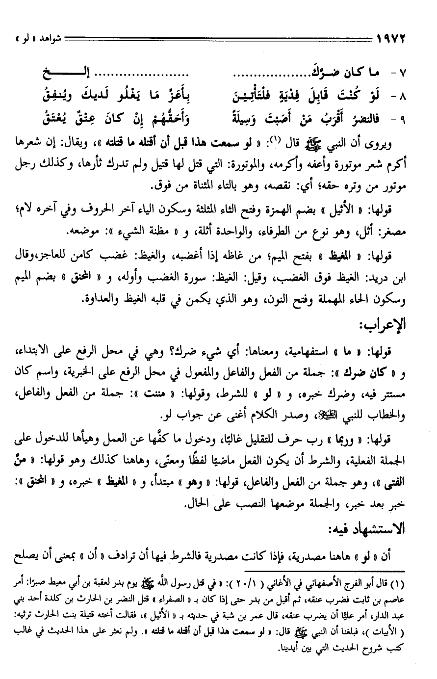 (¬1) قال أبو الفرج الأصفهاني في الأغاني (1/ 20): "في كل رسول الله - صلى الله عليه وسلم - يوم بدر لعقبة بن أبي معيط صبرًا: أمر عاصم بن ثابت فضرب عنقه، ثم أقبل من بدر حتى إذا كان بـ "الصفراء" قتل النضر بن الحارث بن كلدة أحد بني عبد الدار، أمر عليًّا أن يضرب عنقه، قال عمر بن شبة في حديثه بـ "الأثيل"، فقالت أخته قتيلة بنت الحارث ترثيه: (الأبيات)، فبلغنا أن النبي - صلى الله عليه وسلم - قال: "لو سمعت هذا قبل أن أقتله ما قتلته". ولم نعثر على هذا الحديث في غالب كتب شروح الحديث التي بين أيدينا.