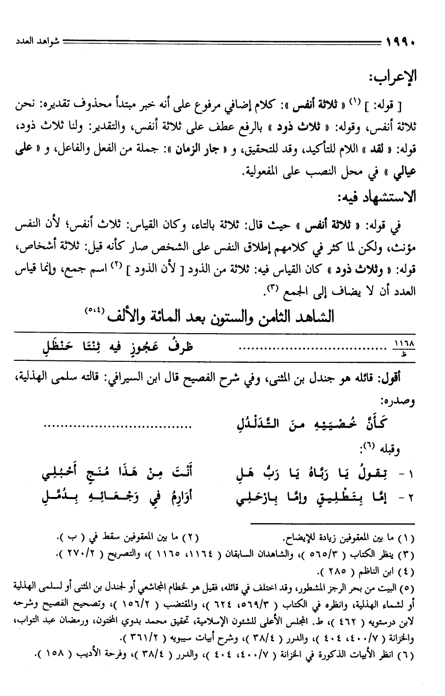 (¬3) ينظر الكتاب (3/ 565)، والشاهدان السابقان (1164، 1165)، والتصريح (2/ 270).