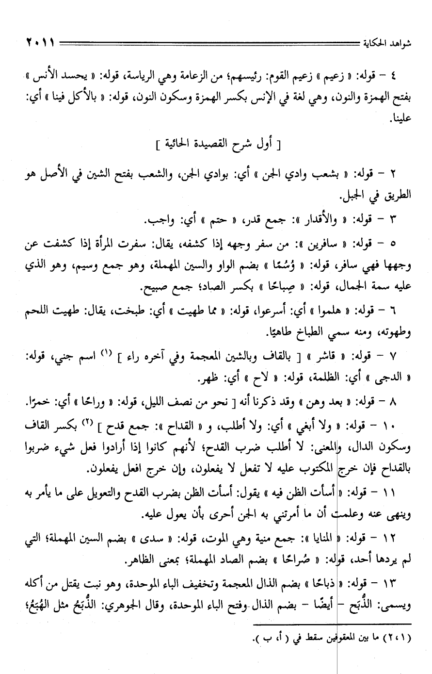 7 - قوله: "قاشر" [بالقاف وبالشين المعجمة وفي آخره راء] (¬1) اسم جني، قوله: "الدجى" أي: الظلمة، قوله: "لاح" أي: ظهر.