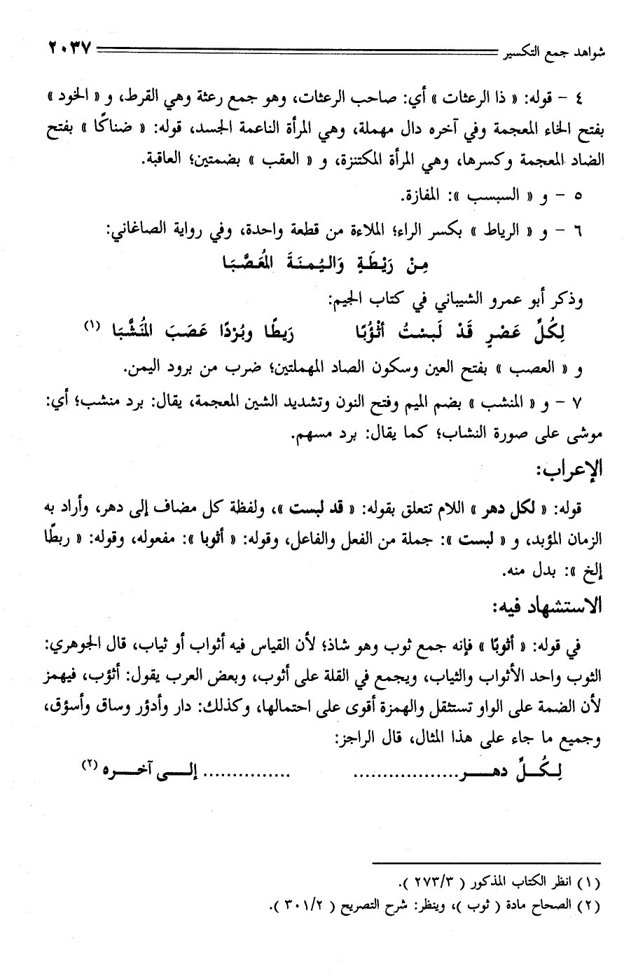 لِكُلِّ عَصْرٍ قَدْ لَبسْتُ أثْؤُبًا ... رَيطًا وبُرْدًا عَصَبَ المنُشَّبَا (¬1)