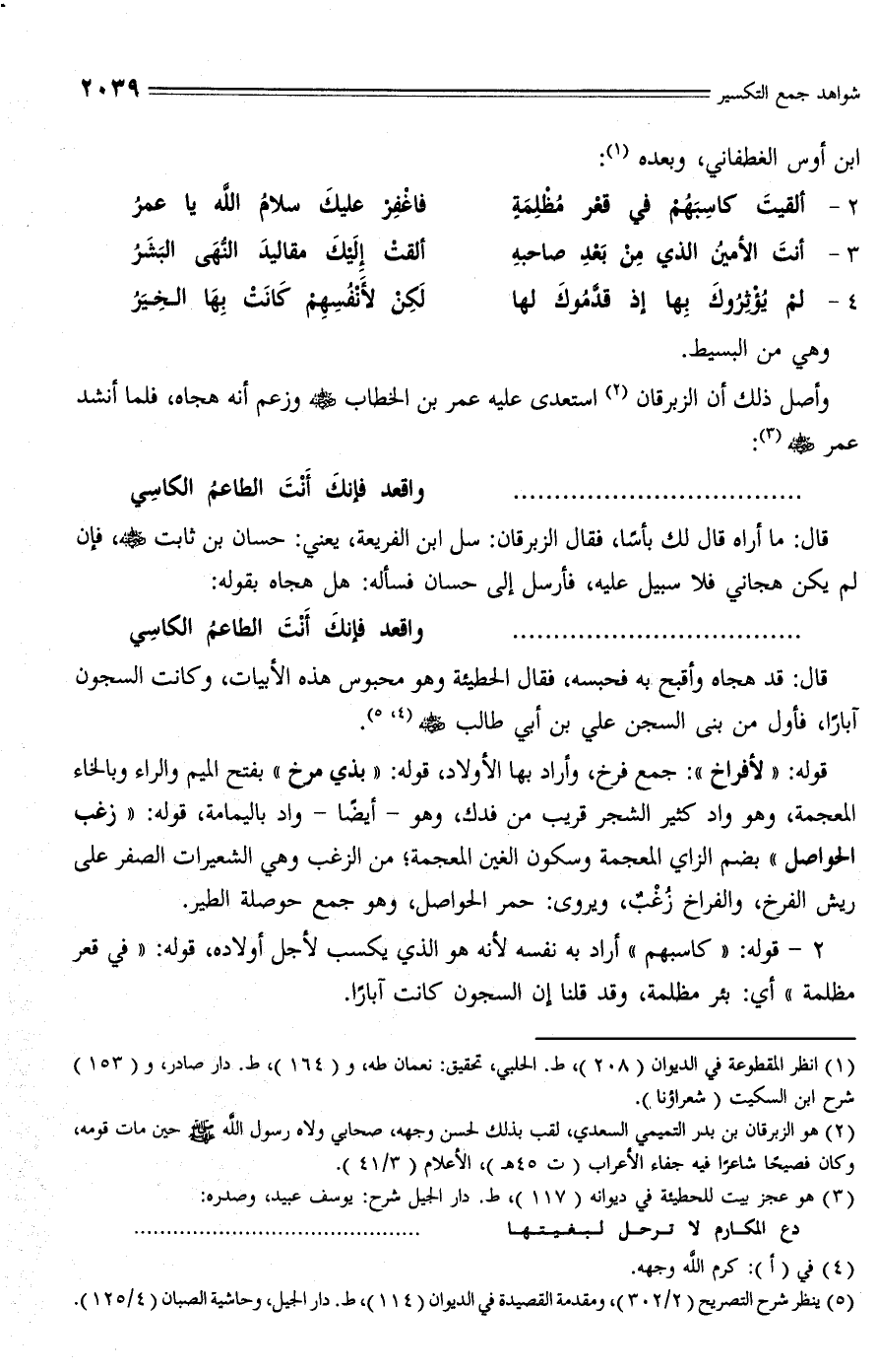 (¬3) هو عجز بيت للحطيئة في ديوانه (117)، ط. دار الجيل شرح: يوسف عبيد، وصدره: