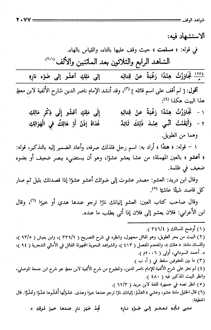 (¬6) قال الخليل مادة عشو، وعشي "العَشْوُ: إتيانك نارًا ترجو عندها خيرًا وهدى. عَشَوْتُها أَعْشُوها عَشْوًا وعُشُوًّا. قال الحطيئة: