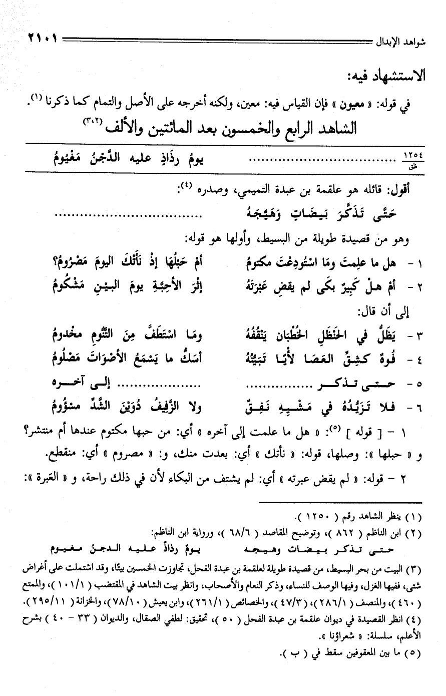 (¬4) انظر القصيدة في ديوان علقمة بن عبدة الفحل (50)، تحقيق: لطفي الصقال، والديوان (33 - 40) بشرح الأعلم، سلسلة: "شعراؤنا".