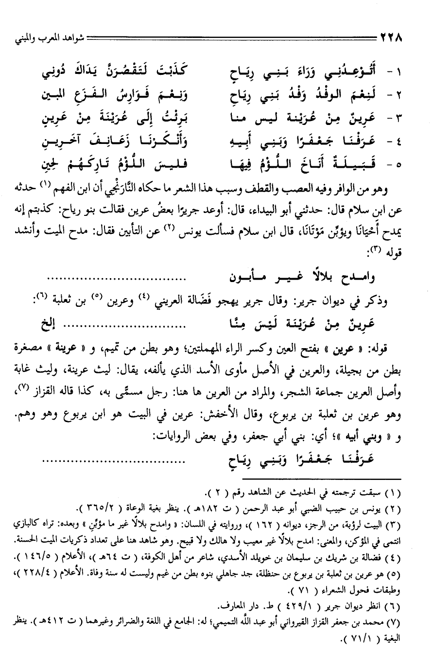 (¬5) هو عرين بن ثعلبة بن يربوع بن حنظلة، جد جاهلي بنوه بطن من غيم وليست له سنة وفاة. الأعلام (4/ 228)، وطبقات فحول الشعراء (71).