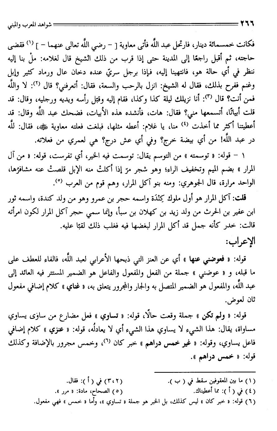 (¬6) قوله: "خبر كان" ليس كذلك، بل الخبر هو جملة "تساوي"، وأما "خمس" فهي مفعول.