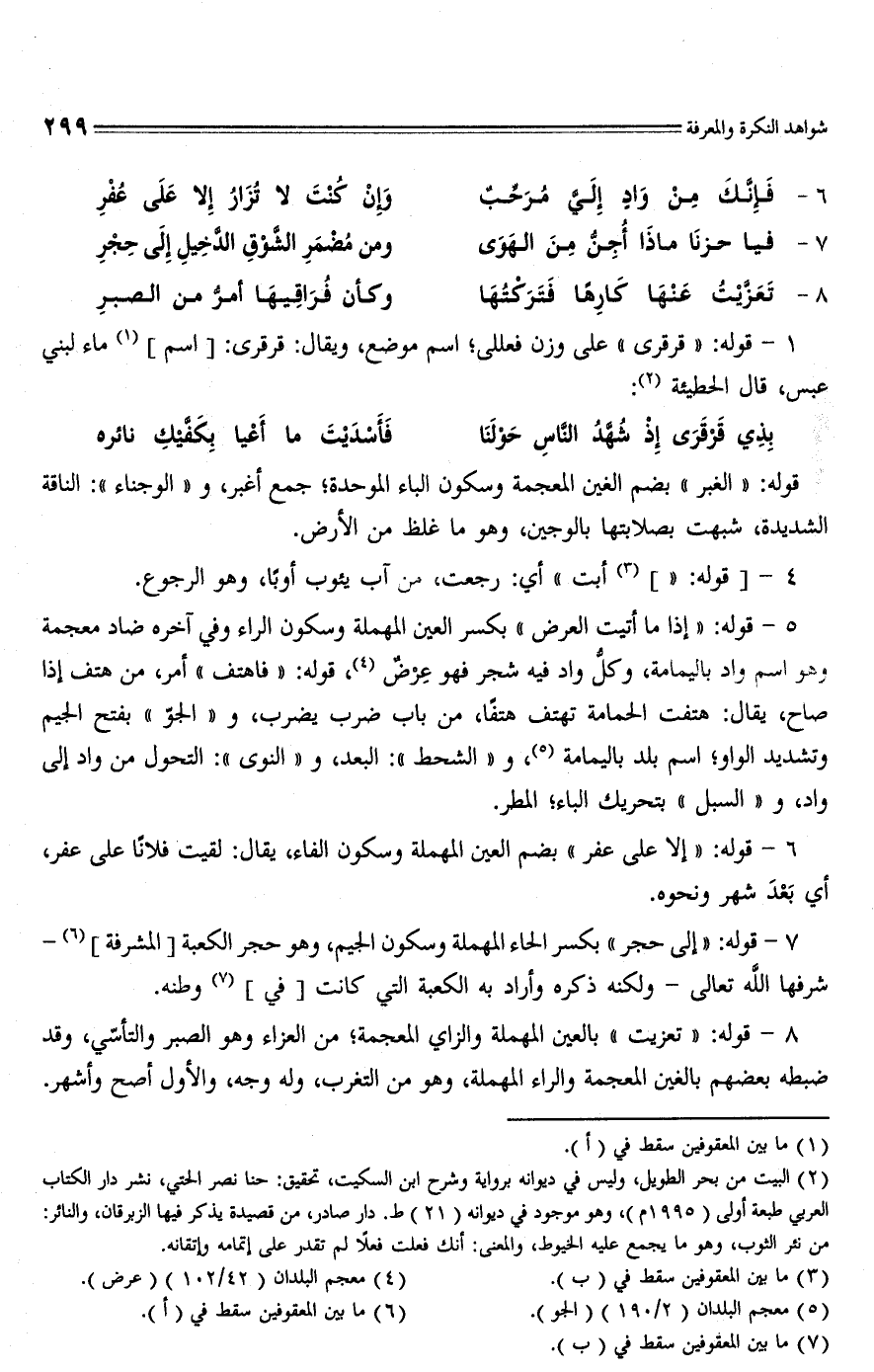 1 - قوله: "قوقرى" على وزن فعللى؛ اسم موضع، ويقال: قرقرى: [اسم] (¬1) ماء لبني عبس، قال الحطيئة (¬2):