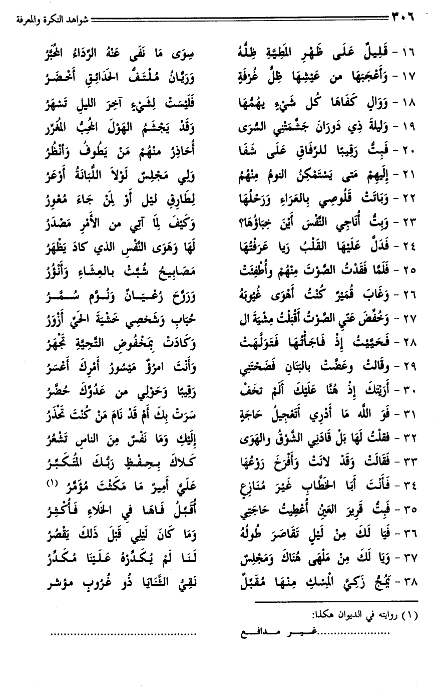 36 - فَيَا لَكَ مِنْ لَيْلٍ تَقَاصَرَ طُولُهُ ... وَمَا كَانَ لَيْلِي قَبْلَ ذَلكَ يَقْصُرُ