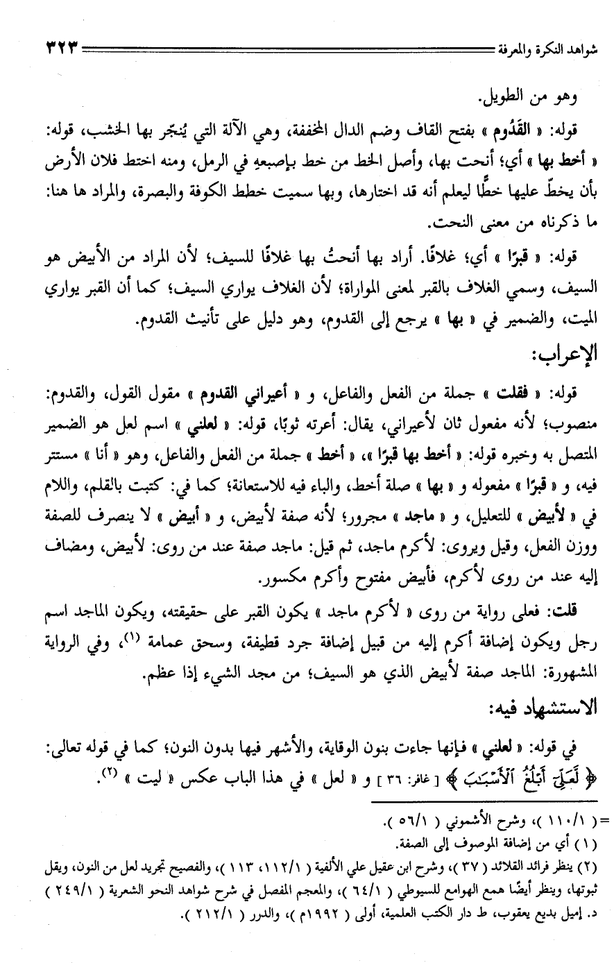 (¬2) ينظر فرائد القلائد (37)، وشرح ابن عقيل علي الألفية (1/ 112، 113)، والفصيح تجريد لعل من النون، ويقل ثبوتها، وينظر أيضًا همع الهوامع للسيوطي (1/ 64)، والمعجم المفصل في شرح شواهد النحو الشعرية (1/ 249) د. إميل بديع يعقوب، ط دار الكتب العلمية، أولى (1992 م)، والدرر (1/ 212).