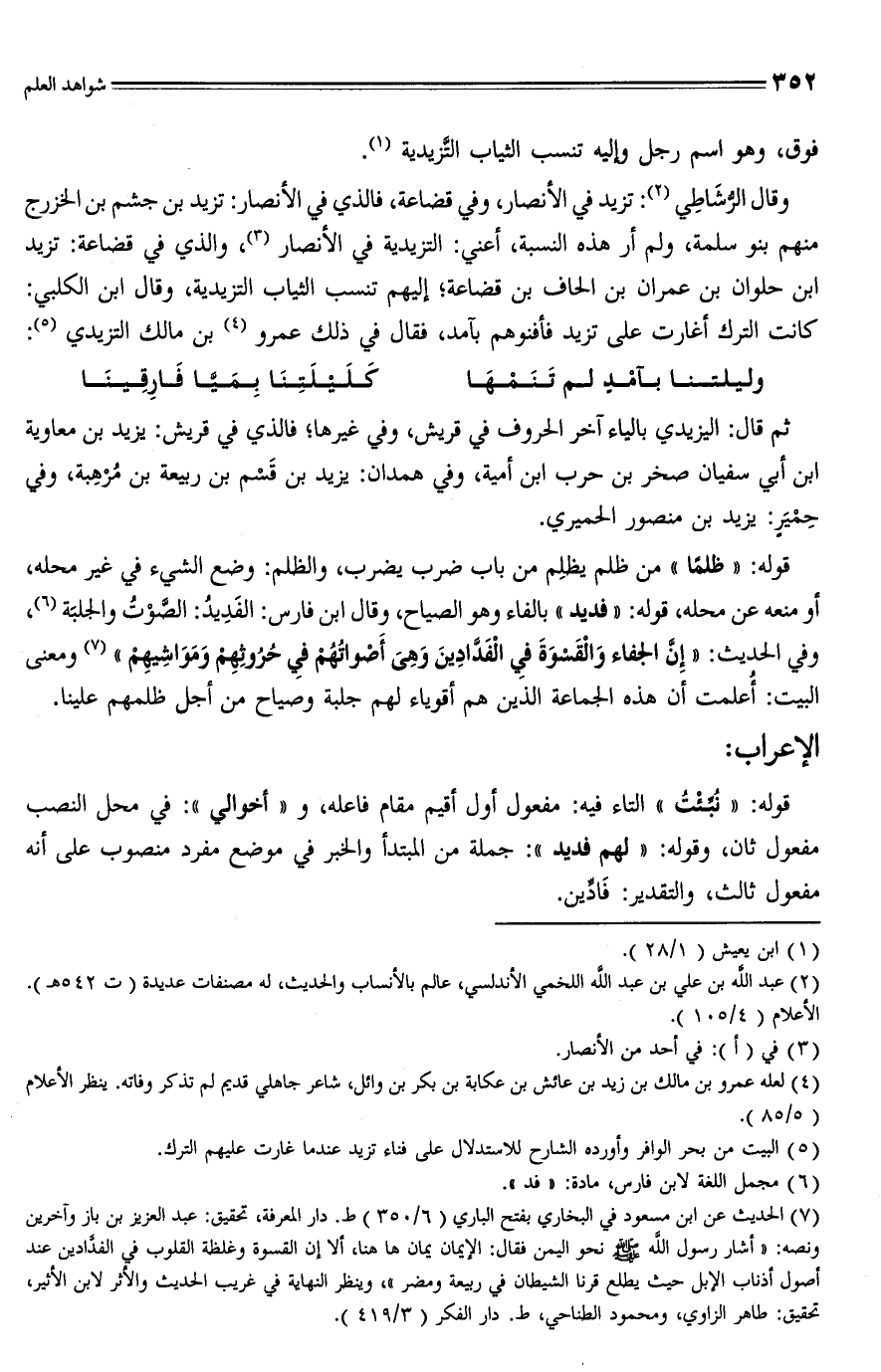 قوله: "ظلمًا" من ظلم يظلِم من باب ضرب يضرب، والظلم: وضع الشيء في غير محله، أو منعه عن محله، قوله: "فديد" بالفاء وهو الصياح، وقال ابن فارس: الفَدِيدُ: الصَّوْتُ والجلبَة (¬6)، وفي الحديث: "إِن الجفاء وَالْقَسْوَةَ فيِ الْفَدَّادِينَ وَهِيَ أَصْواتُهُمْ فيِ حُرُوثِهِمْ وَمَوَاشِيهِمْ" (¬7) ومعنى البيت: أُعلمت أن هذه الجماعة الذين هم أقوياء لهم جلبة وصياح من أجل ظلمهم علينا.