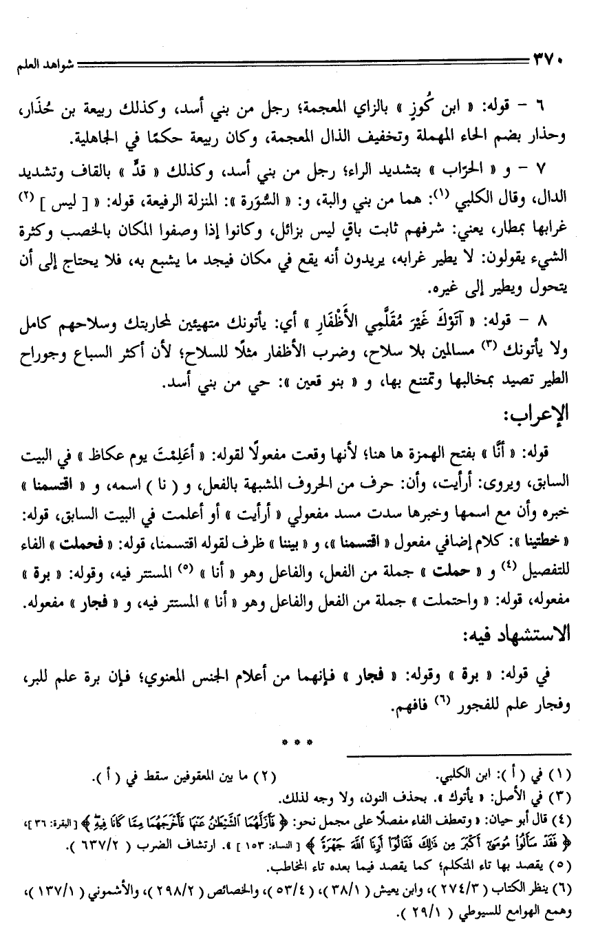 (¬6) ينظر الكتاب (3/ 274)، وابن يعيش (1/ 38)، (4/ 53)، والخصائص (2/ 298)، والأشموني (1/ 137)، وهمع الهوامع للسيوطي (1/ 29).