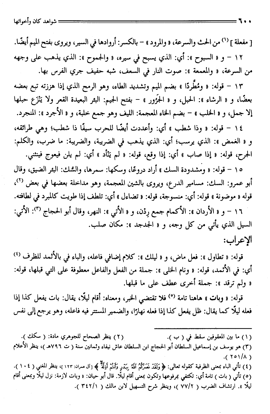 12 - و"السبوح": أي: الذي يسبح في سيره، "والجموح": الذي يذهب على وجهه من السرعة، "والمعمعة": صوت النار في السعف، شبه حفيف جري الفرس بها.
