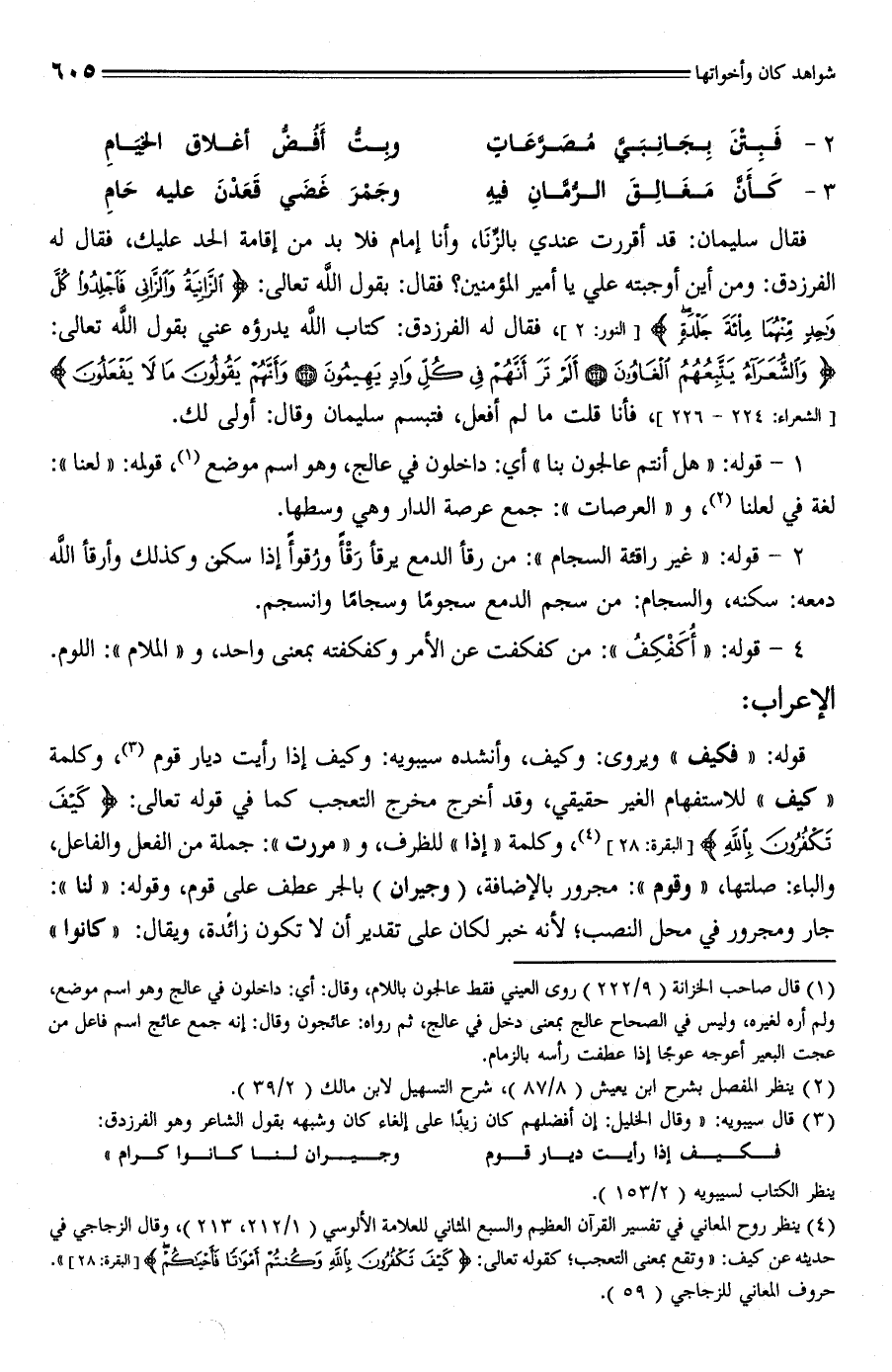 (¬4) ينظر روح المعاني في تفسير القرآن العظم والسبع المثاني للعلامة الألوسي (1/ 212، 213)، وقال الزجاجي في حديثه عن كيف: "وتقع بمعنى التعجب؛ كقوله تعالى: {كَيْفَ تَكْفُرُونَ بِاللَّهِ وَكُنْتُمْ أَمْوَاتًا فَأَحْيَاكُمْ} [البقرة: 28] ". حروف المعاني للزجاجي (59).