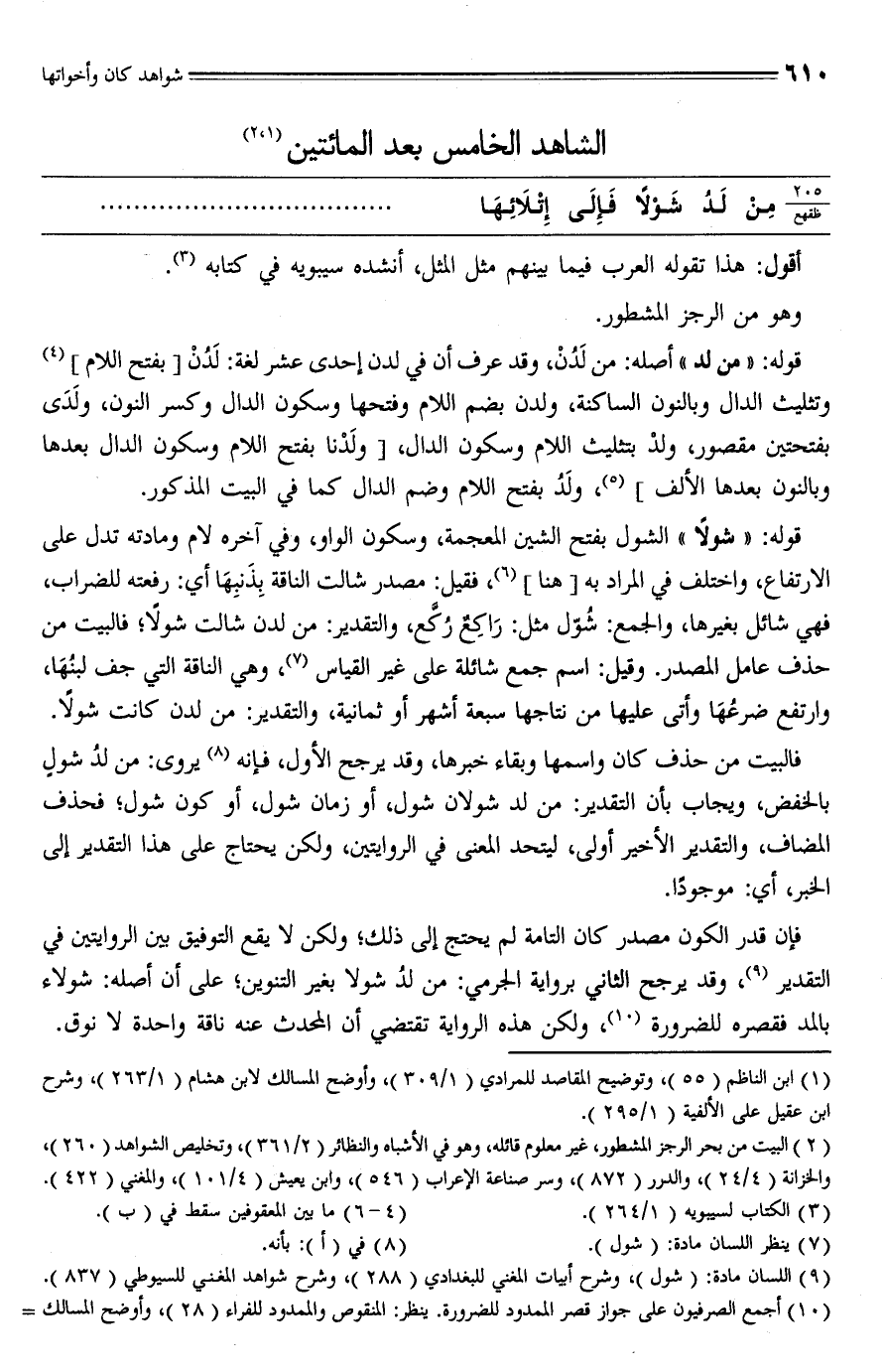 (¬9) اللسان مادة: (شول)، وشرح أبيات المغني للبغدادي (288)، وشرح شواهد المغني للسيوطي (837).
