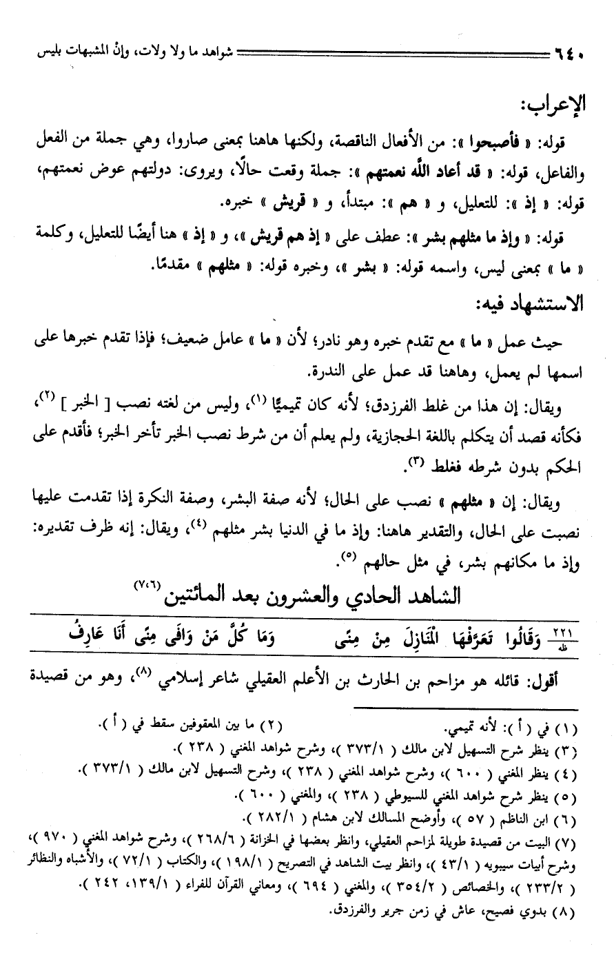 الشاهد الحادي والعشرون بعد المائتين (¬6)، (¬7)