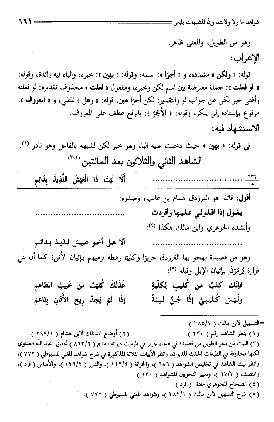 (¬5) شرح التسهيل لابن مالك (1/ 382)، وشواهد المغني للسيوطي (772).