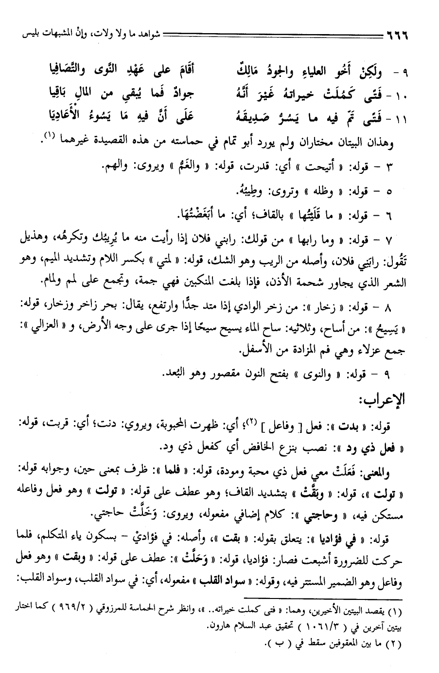 (¬1) يقصد البيتين الأخيرين، وهما: "فتى كملت خيراته .. "، وانظر شرح الحماسة للمرزوقي (2/ 969) كما اختار بيتين آخرين في (3/ 1061) تحقيق عبد السلام هارون.
