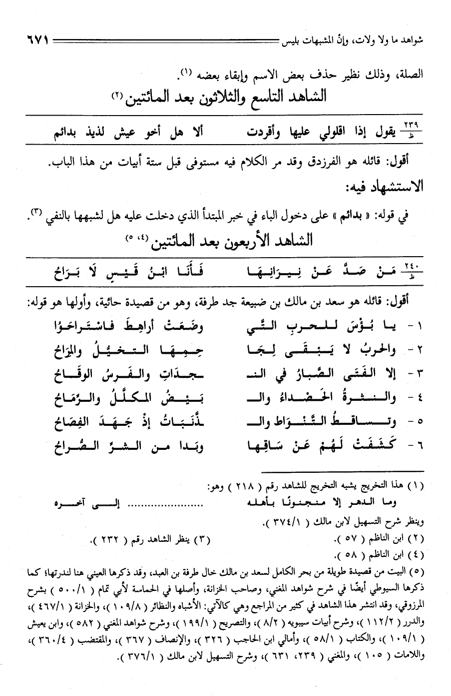 الشاهد الأربعون بعد المائتين (¬4)، (¬5)