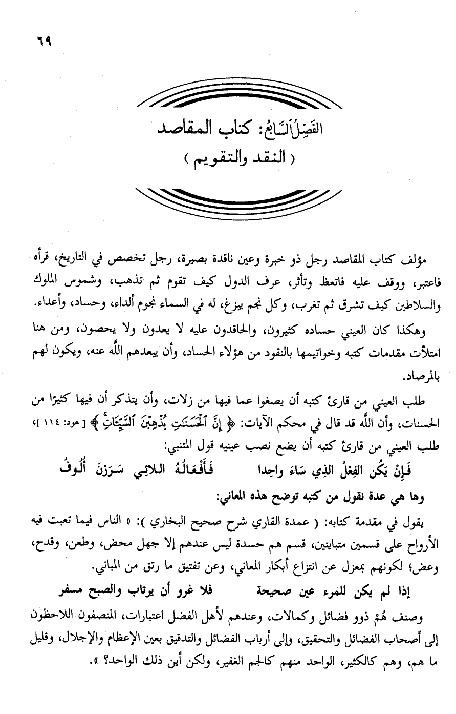 الفصل السابع: كتاب المقاصد (النقد والتقويم)
