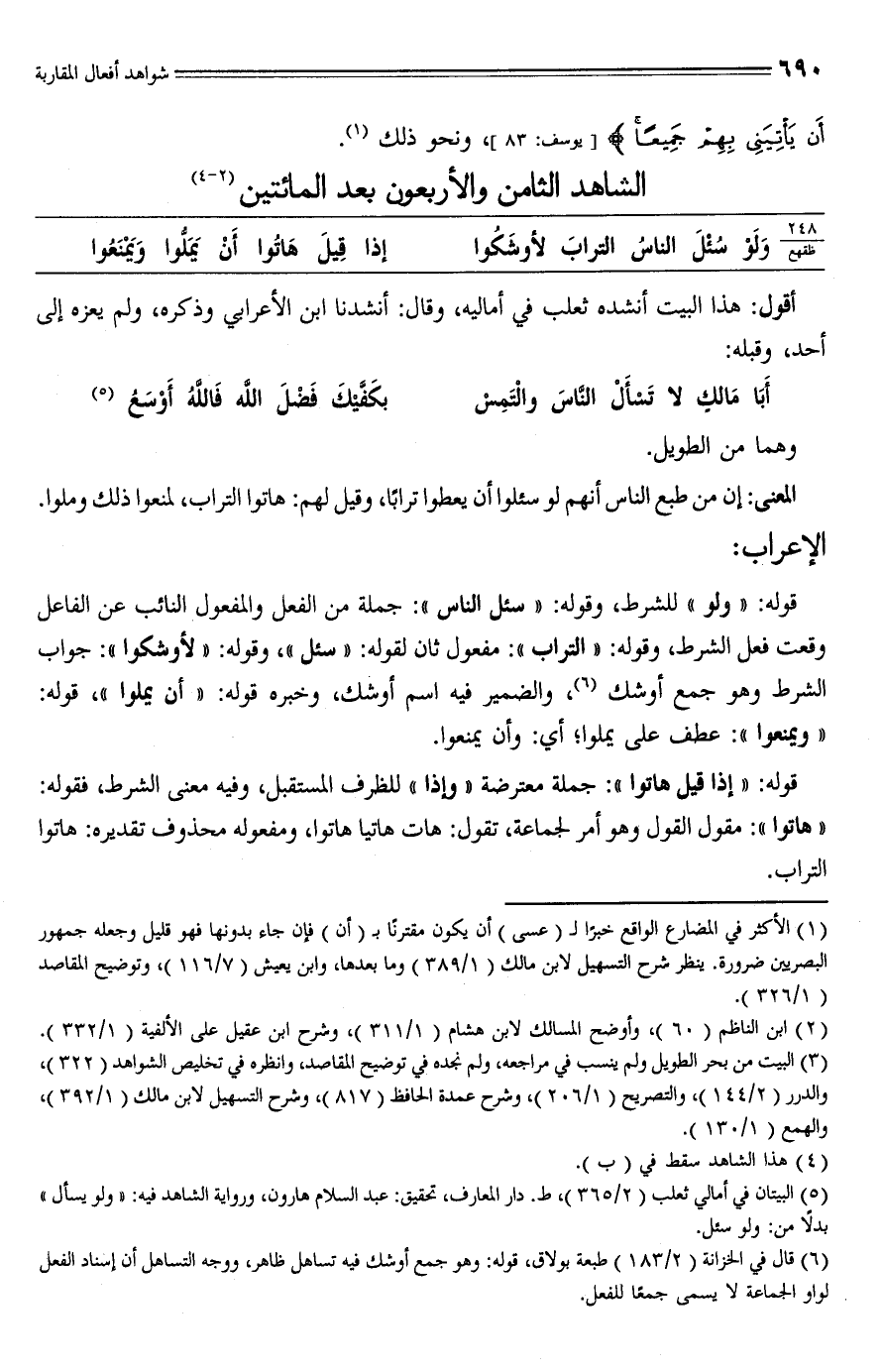 (¬6) قال في الخزانة (2/ 183) طبعة بولاق، فوله: وهو جمع أوشك فيه تساهل ظاهر، ووجه التساهل أن إسناد الفعل لواو الجماعة لا يسمى جمعًا للفعل.